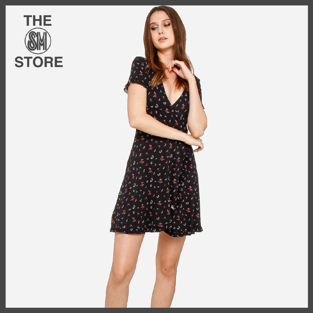 Forever 21 Ladies Floral Wrap Dress In Black Shopee Philippines